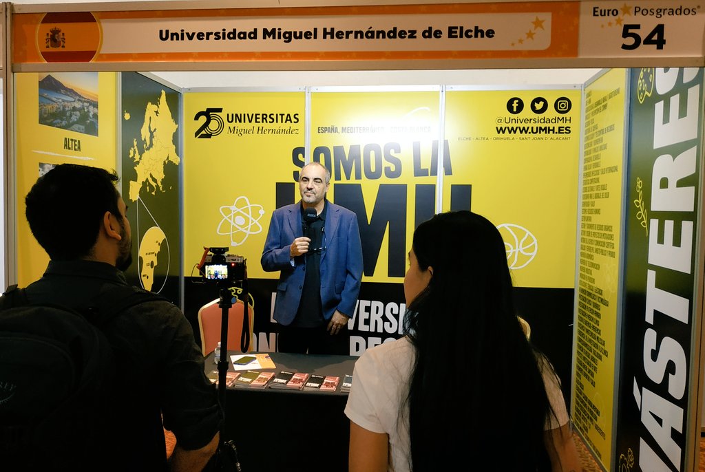 La UMH retoma con esta feria las acciones de internacionalización presenciales en Latinoamérica y, en representación de la universidad han asistido José Luis González Esteban, vicerrector adjunto de Relaciones Internacionales, y Sergio Murillo Palmero, periodista del Servicio de Relaciones Internacionales.