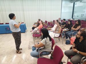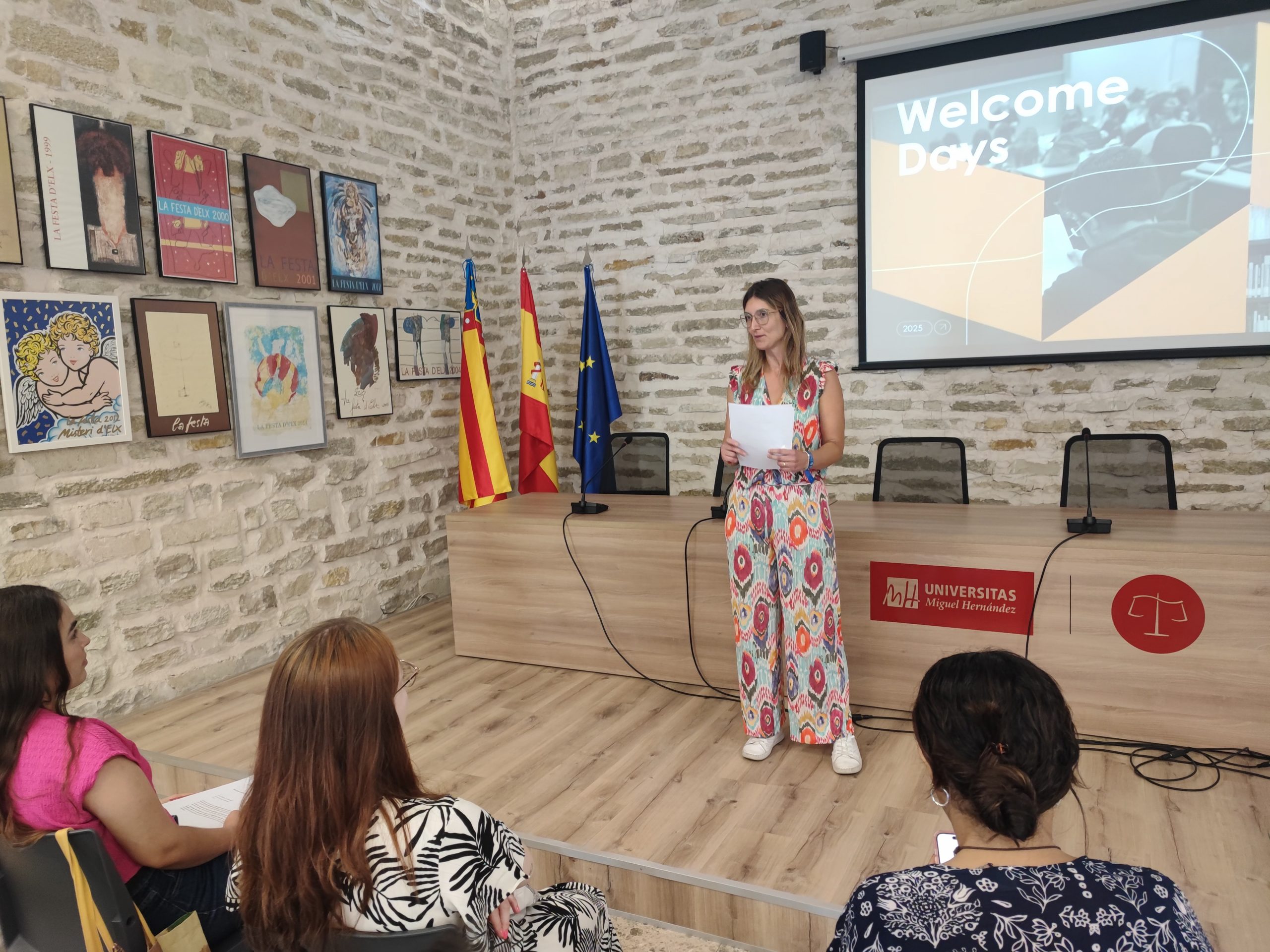 Además, la directora del máster EMOTION, Asia Fernández; Elías Poveda, técnico del Servicio de Relaciones Internacionales; Eva Corbalán, por parte de Vida UMH; y las técnicos del Observatorio Ocupacional de la UMH, Lola López y Ana Martínez, han completado la bienvenida mostrando los distintos servicios que ofrece la UMH en materia de empleo, deporte, cultura y ocio.