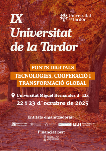 L’Edifici Valona del Campus d’Elx de la UMH acollirà els dies 22 i 23 d’octubre la IX Universitat de Tardor: “Ponts digitals: tecnologies, cooperació i transformació global”, en què es realitzarà una anàlisi del potencial de les noves tecnologies com a ferramentes per a impulsar el progrés en països en desenvolupament, generant tant oportunitats com desafiaments en la formació i l’ocupació.