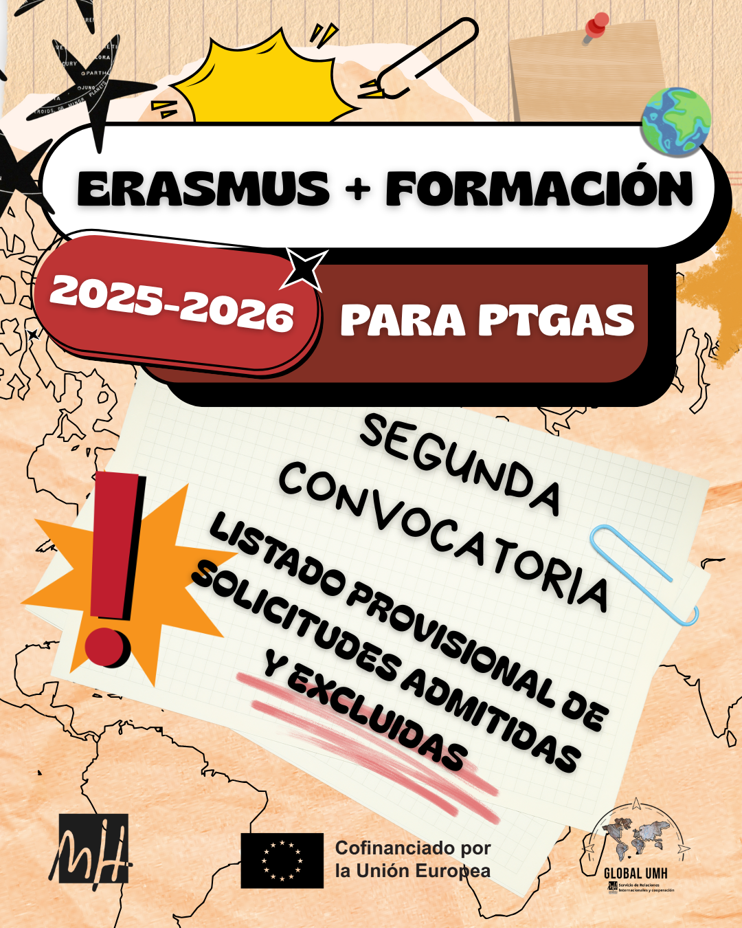 El Vicerectorat d’Internacionalització i Cooperació de la Universitat Miguel Hernández (UMH) d’Elx publica el llistat provisional de sol·licituds admeses i excloses de la 2a convocatòria del programa de mobilitat Erasmus+ per a personal tècnic, de gestió i d’administració i servicis del curs acadèmic 2025/2026.