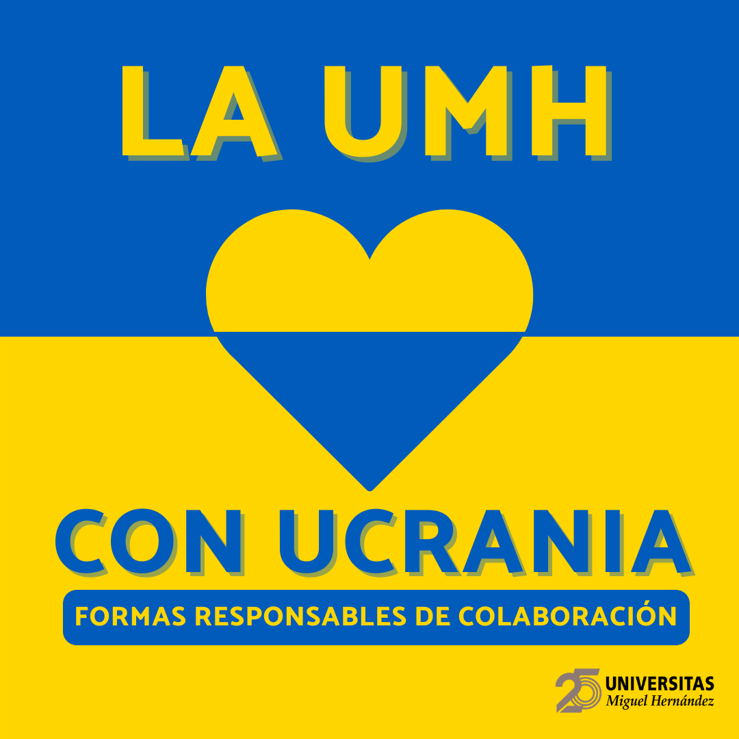The Miguel Hernández University of Elche (UMH) is firmly committed to lending its support behind the NGOs and humanitarian agencies that are involved in providing refuge, water, food, medicine, and aid for the Ukrainian people. To help with this, and due to numerous requests by the university community, the Vice Rectorate for International Relations has compiled information about several responsible methods to help these entities.