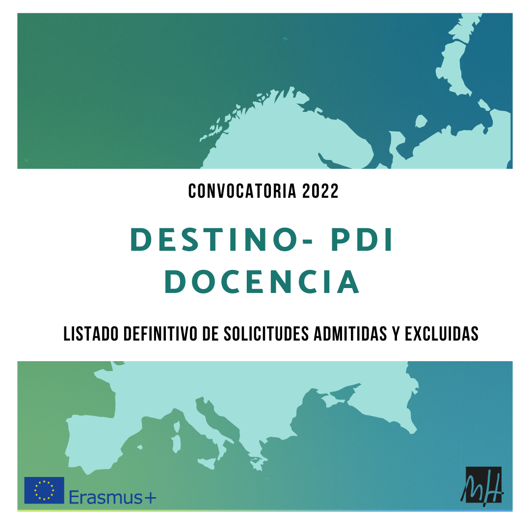 The Vice Rectorate for International Relations at the Miguel Hernández University of Elche (UMH) has hereby published the definitive list of accepted and rejected applications for financial aid for Destino program mobility by Faculty and Research Personnel for teaching during 2022.