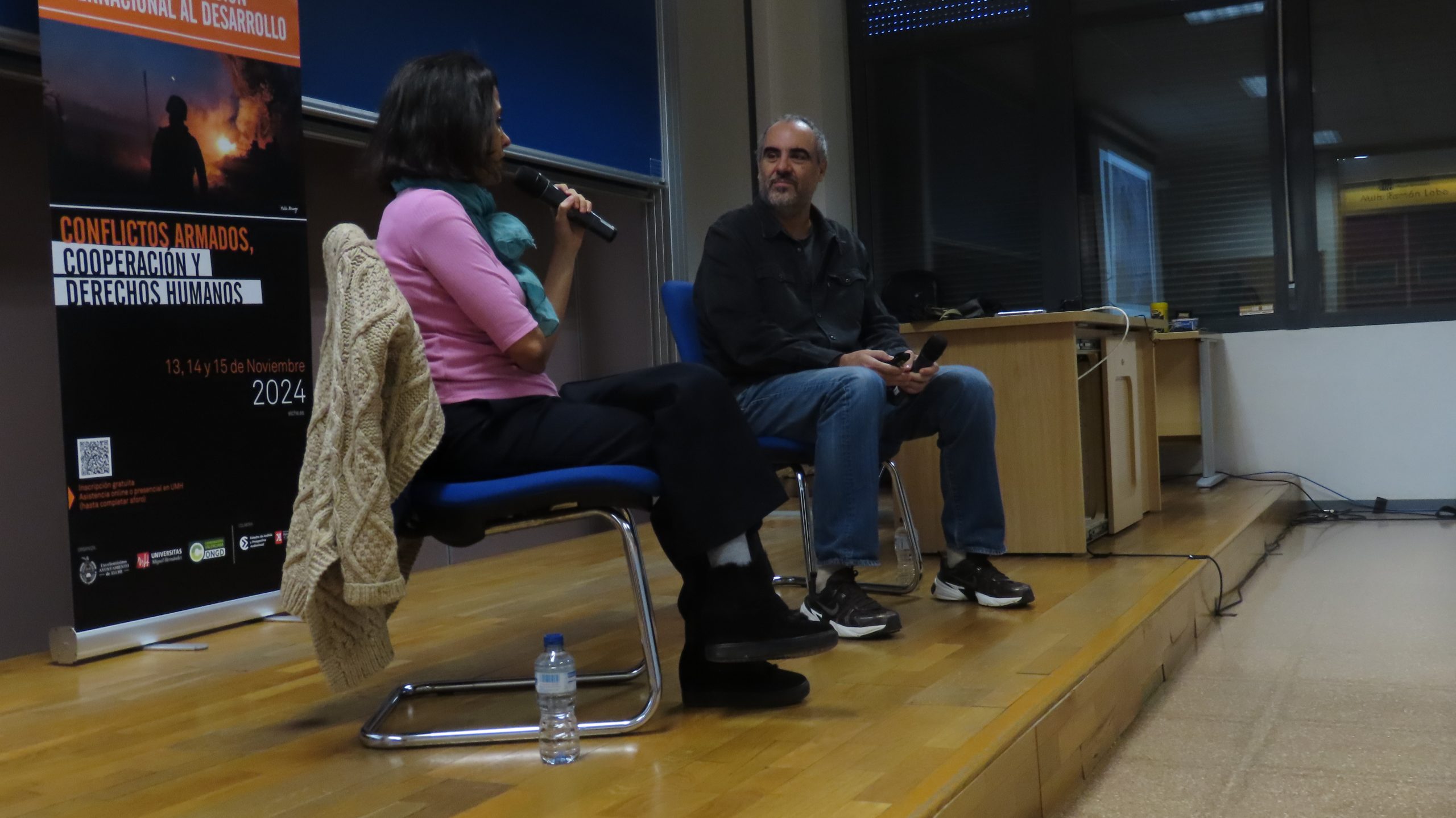 The lectures in this conference were presented by the Director of the Area of Development Cooperation and Volunteering at the UMH, Juana Aznar, and Councilperson of Cooperation at the Elche City Hall, Celia Lastra. The lectures were moderated by journalism professors, José Luis González-Esteban and Carmen López; journalists, Andrea Aldana, José Antonio Serrano, María Subieta, and Isidre Ambrós. Event organizers included the UMH, Elche City Hall, and the Valencian Coordinator of NGOs, in collaboration with the Ryszard Kapuscinski Seminar on Journalism and Human Rights of the UMH and the Chair of Audiovisual Analysis and Prospective.