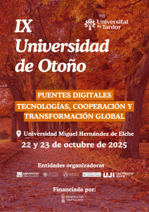 On October 22 & 23, 2025, La Valona Hall on the UMH Elche Campus is hosting the ninth edition of University of the Fall, held on this occasion under the slogan of “Digital Bridges: Technologies, Cooperation and Global Transformation.” This event is going to analyze the potential of new technologies to be tools driving progress in developing counties, generating as many opportunities as challenges in training and employment.