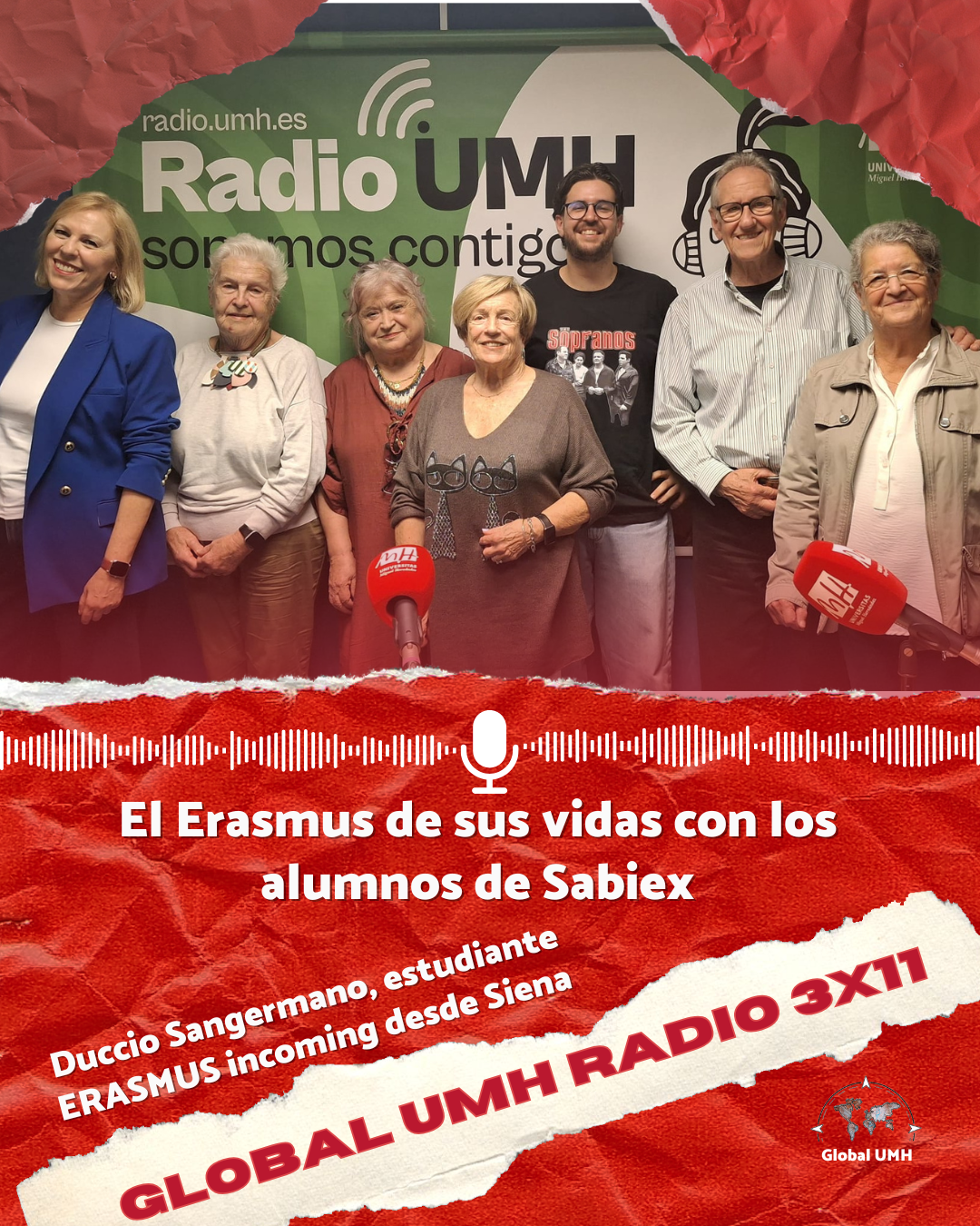In today’s program of Global UMH Radio, the third from its 11th season, we hear from a broad range of voices who discuss activities at the UMH Vice Rectorate for Internationalization and Cooperation. Among other topics, we speak with AUNEX 2025-2026 students, pioneers in venturing forth on the first Erasmus mobility program for individuals over 55 years of age.