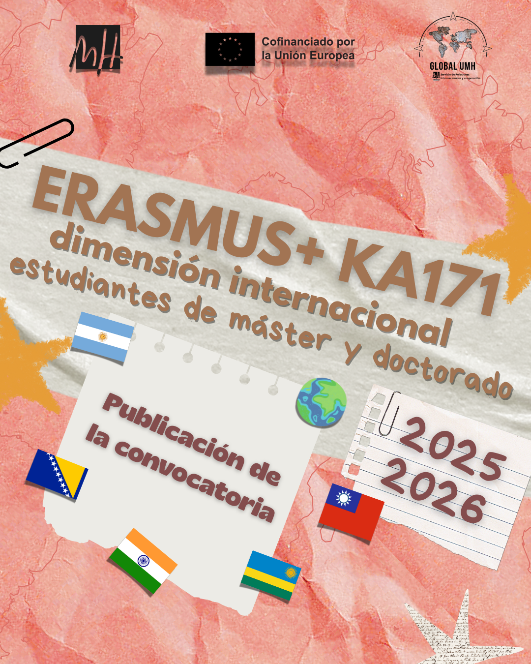 The Vice Rectorate for Internationalization and Cooperation at the Miguel Hernández University of Elche (UMH) hereby announces the KA171 Erasmus+ international mobility program call for third countries not associated to the program for doctoral students during the 2025 – 2026 school year.