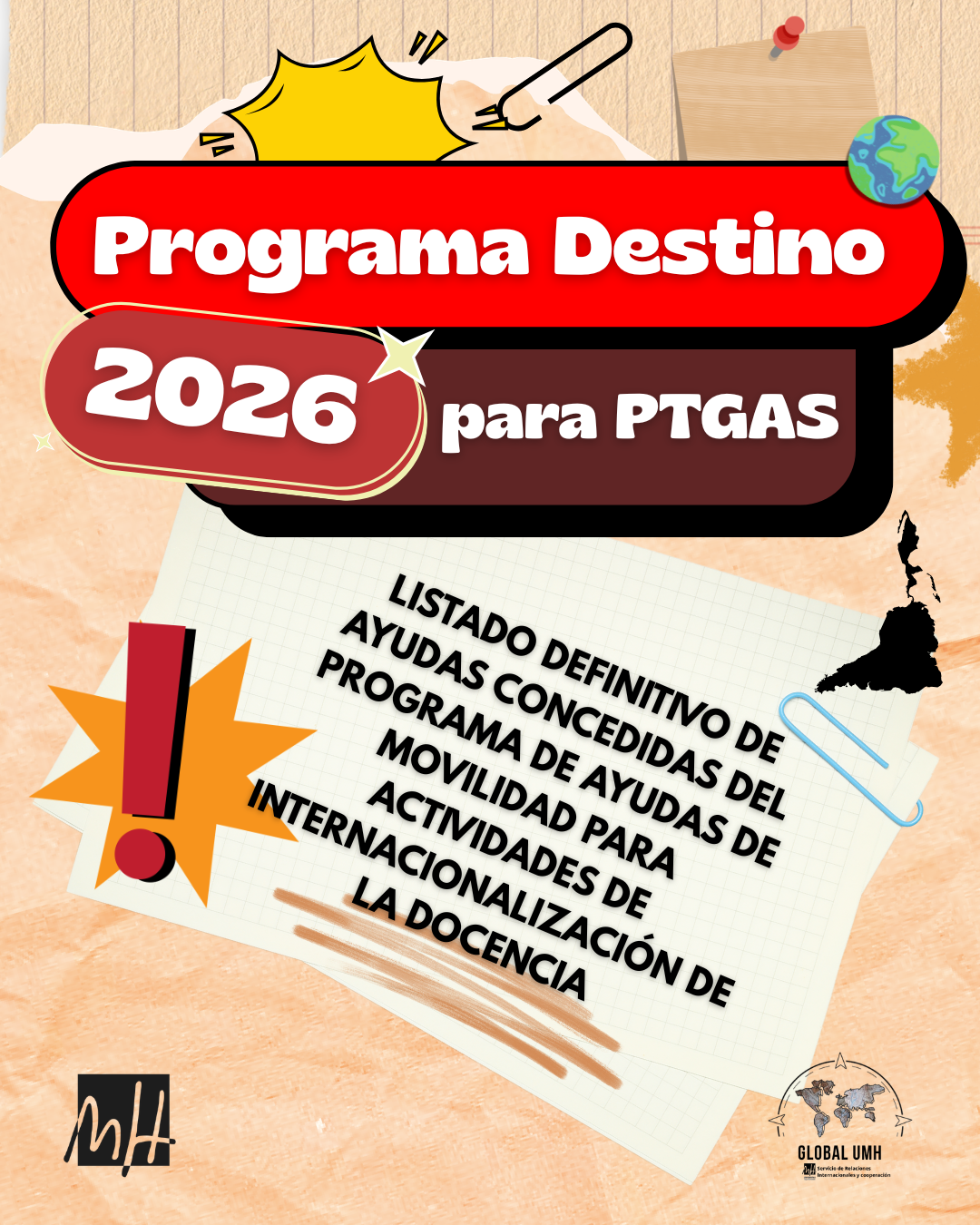 Definitive list of financial aid awarded under the mobility grant program for the internationalization of training – 2026 DESTINO PTGAS Program