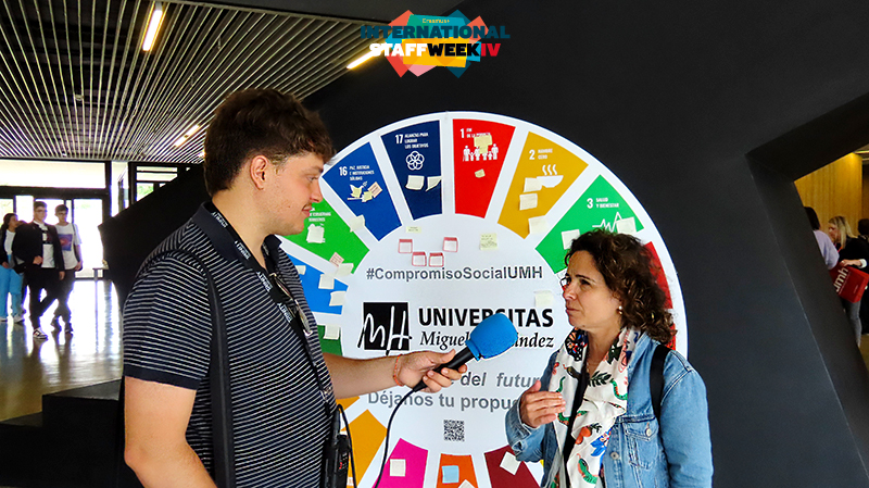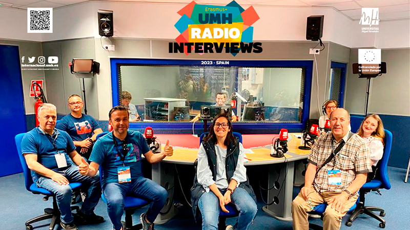 Presenter Susi Niñoles with Staff Week participants from different universities at UMH radio station // further information