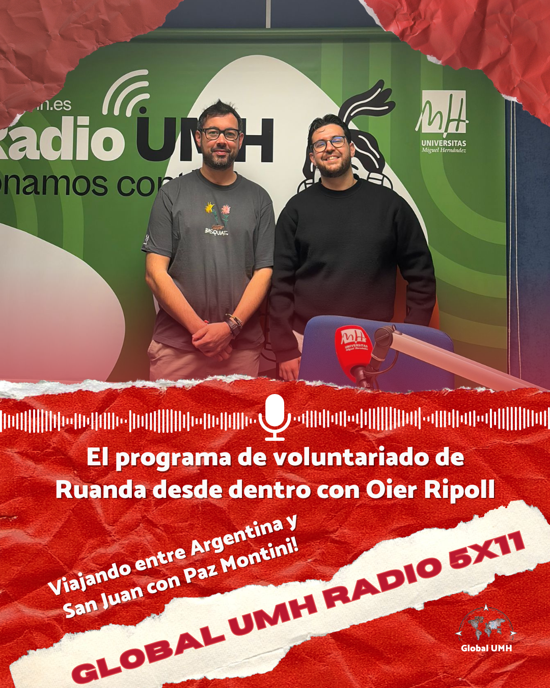 01×05 (11/10/2019): Global UMH RADIO es el programa de Radio UMH que te acerca las noticias más destacadas del Servicio de Relaciones Internacionales, Cooperación al Desarrollo y Voluntariado de la UMH. En el estreno de la cuarta temporada, hablaremos del Máster de Cooperación y Desarrollo con su directora Lucy Parker. Además, entrevistamos al director del Área de Cooperación al Desarrollo y Voluntariado de la UMH, Juan José Ballesta. Dentro del mismo marco, tras finalizar hace unos días la novena edición del programa de voluntariado de la UMH en Ruanda, conversaremos con el profesor de la UMH, Jose Luis González, y los voluntarios, Lis Gaibar y Enrique Mas, quienes han desarrollado el proyecto de radio educomunicativa en Ruanda.