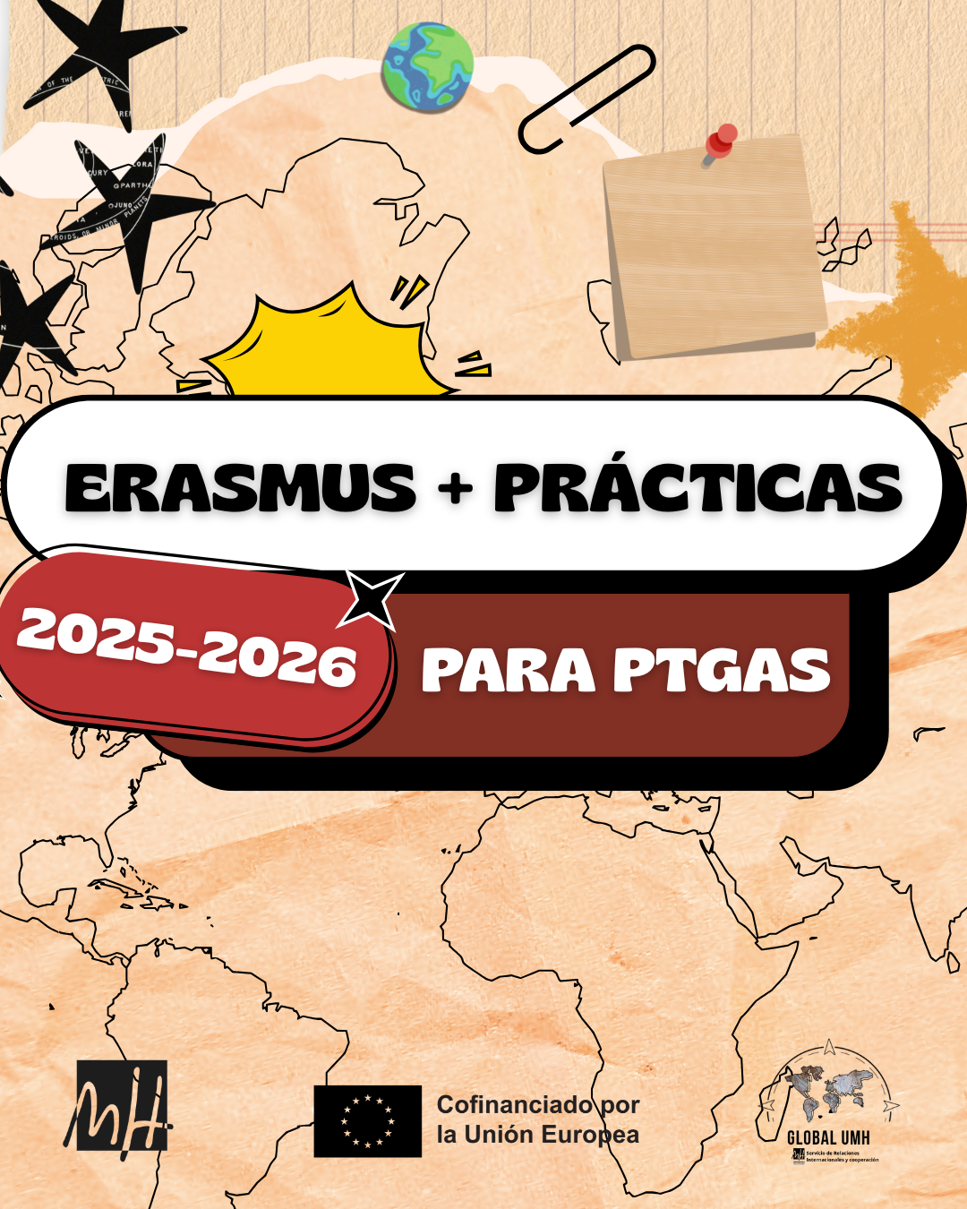 NUEVO (12/12/2025): El Vicerrectorado de Internacionalización y Cooperación de la Universidad Miguel Hernández (UMH) de Elche publica la 2ª convocatoria del Programa de Movilidad ERASMUS+, modalidad formación (STT) para personal técnico, de gestión y de administración y servicios (PTGAS) para el curso 2025/2026. Las personas interesadas en solicitar las ayudas pueden hacerlo a través de la Sede Electrónica de la UMH (https://sede.umh.es/procedimientos/movilidadprograma-internacional-de-salida-para-ptgas/) Puedes consultar el texto completo de la convocatoria a continuación: