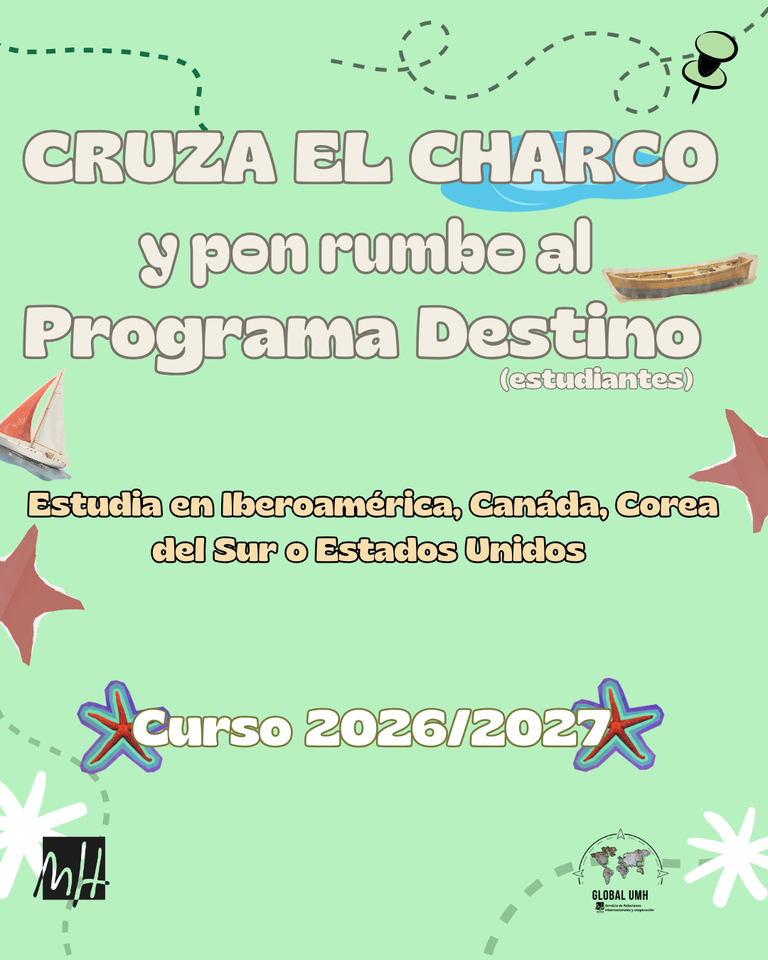 NUEVO (25/03/2026): El Vicerrectorado de Internacionalización y Cooperación publica la convocatoria del programa de movilidad internacional DESTINO UMH para estudiantes de grado, curso académico 2026/2027.